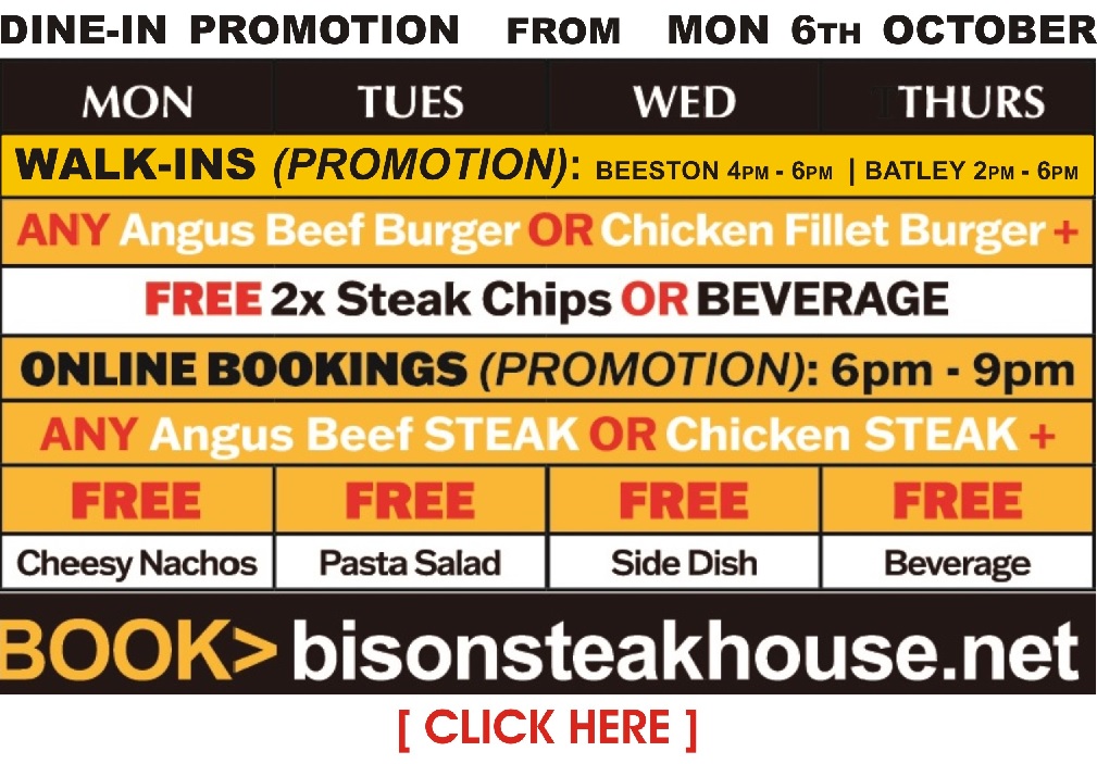 NEW! Promotion from Bison Steakhouse / BEESTON & BATLEY.